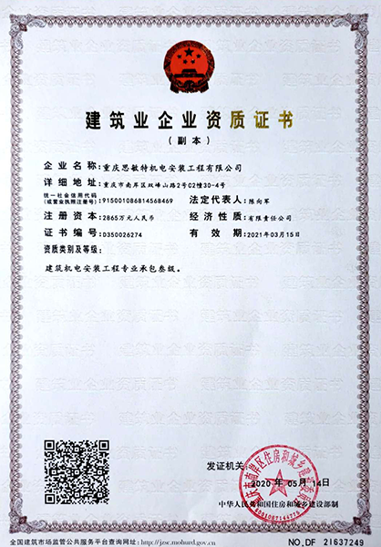 重慶思敏特機電安裝工程有限公司北京分公司地址:北京市門頭溝區(qū)石龍開發(fā)區(qū) 聯(lián)系電話:010-60804650